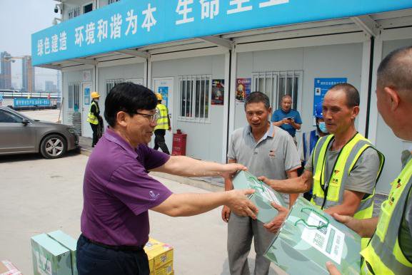 按照公司工作部署,领导班子成员到基层联系点开展“三送”活动。一是送学到项目,深入学习贯彻《求是》杂志上发表的习近平总书记重要文章《更好把握和运用党的百年奋斗历史经验》,带领广大一线职工深入学习领会习近平总书记重要讲话精神;二是送清凉到人手,对在酷暑之中坚守一线的职工,公司领导给项目每位职工送上“清凉礼包”,叮嘱他们做好防暑降温和个人安全防护;三是与一线职工促膝而谈,了解他们在生产生活和家庭中的实际困难,送去组织的关怀。
